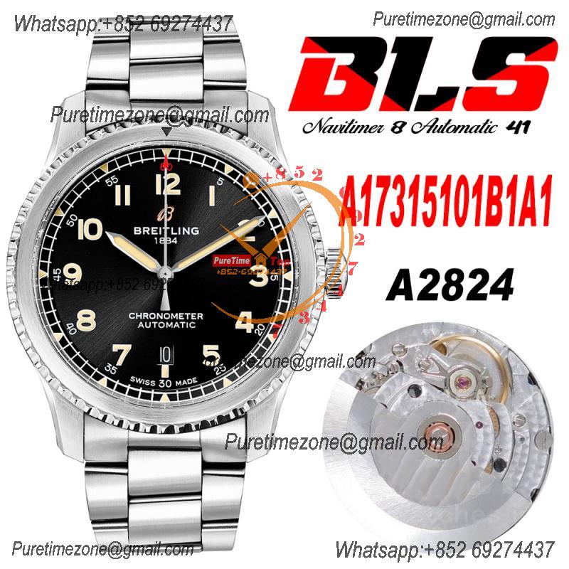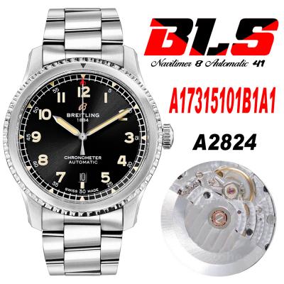 Navitimer Aviator 8 A17315101 A2824 Automatic Mens Watch Best Edition BLSF Black Dial Stainless Steel Bracelet