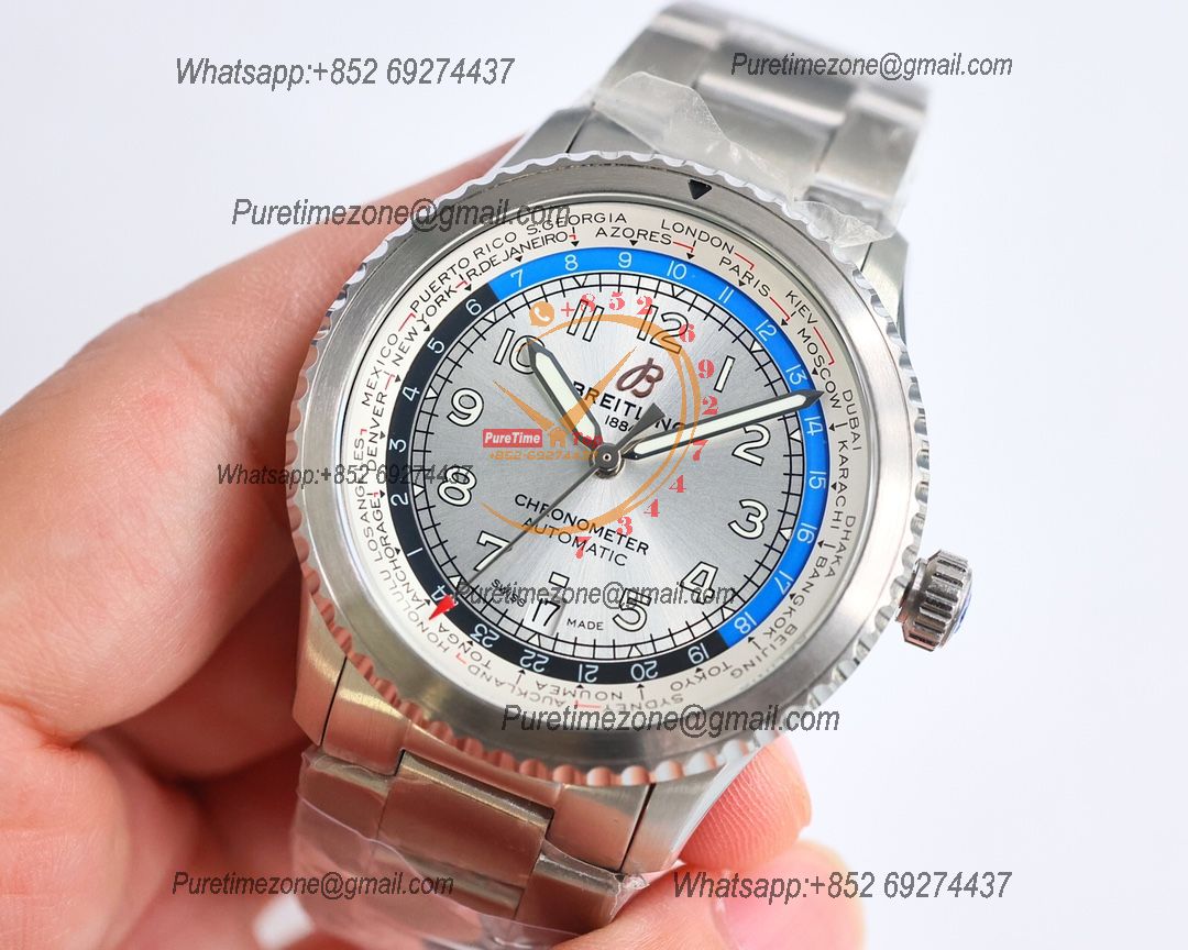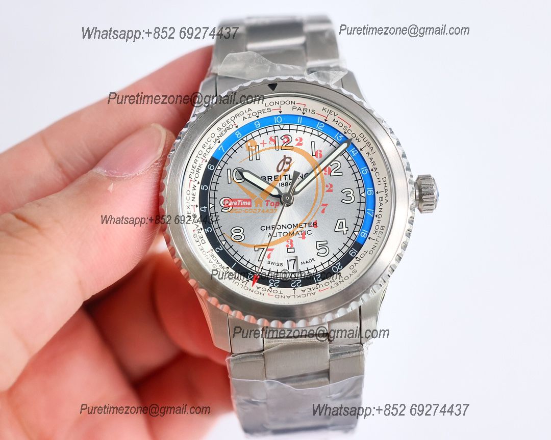 Navitimer Aviator 8 AB3521 A2824 Automatic Mens Watch Best Edition BLSF Silver Dial Stainless Steel Bracelet