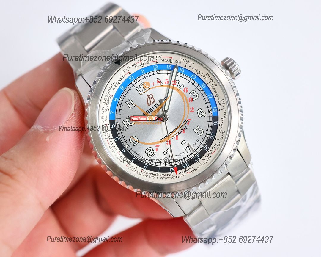 A24322121 Navitimer 1 World GMT A7750 Automatic Chronograph Mens Watch White Dial Black Leather Strap Best Edition