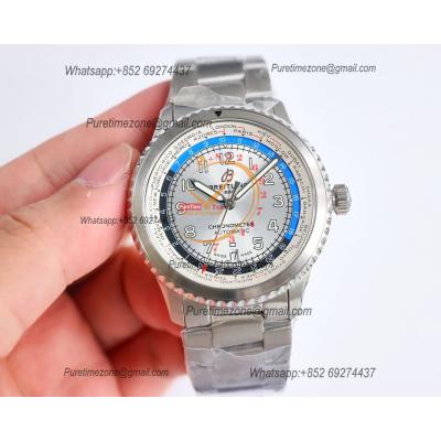 A24322121 Navitimer 1 World GMT A7750 Automatic Chronograph Mens Watch White Dial Brown Leather Strap Best Edition