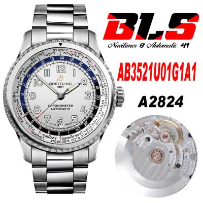Navitimer Aviator 8 AB3521 A2824 Automatic Mens Watch Best Edition BLSF Silver Dial Stainless Steel Bracelet