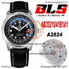 Navitimer Aviator 8 AB3521 A2824 Automatic Mens Watch SS Best Edition BLSF Black Dial Black Leather Strap