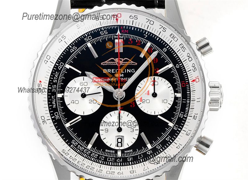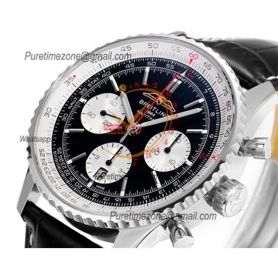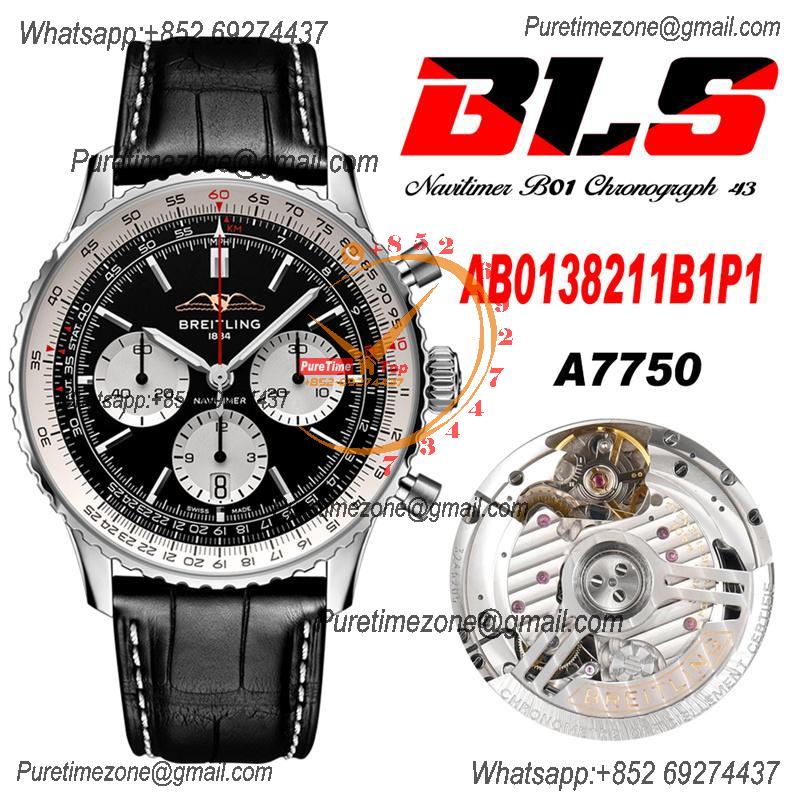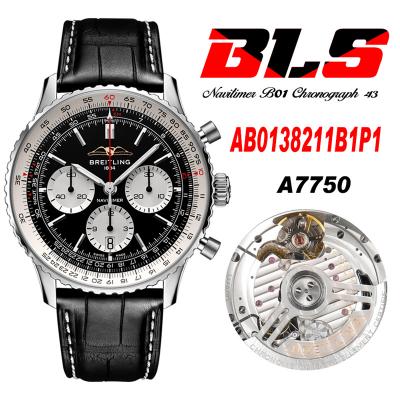 Navitimer B01 AB0138211 A7750 Automatic Chronograph Mens Watch Best Edition BLSF Black Dial Leather Strap