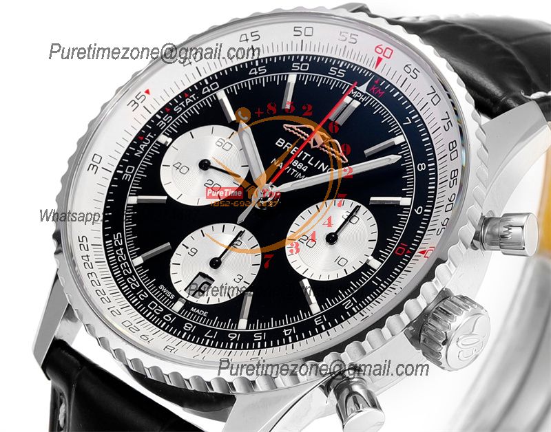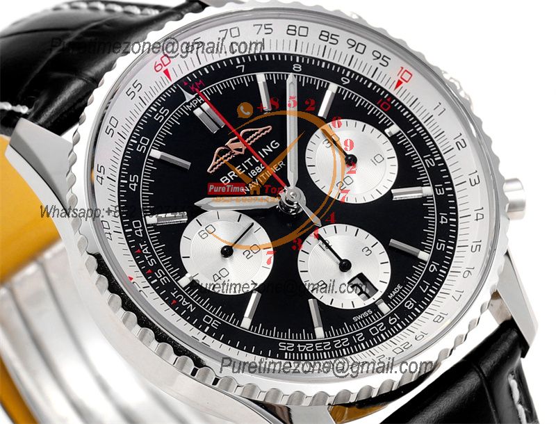 A24322121 Navitimer 1 World GMT A7750 Automatic Chronograph Mens Watch Black Dial Leather Strap Best Edition
