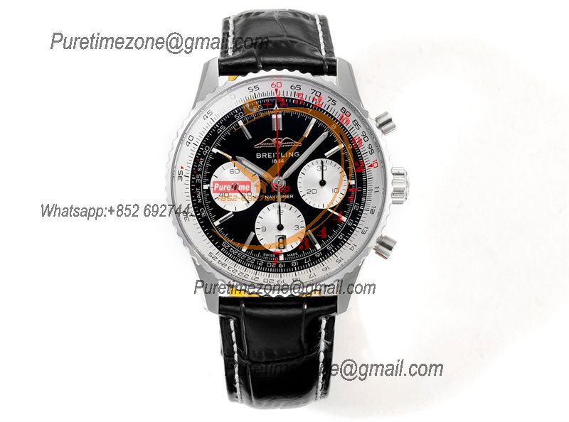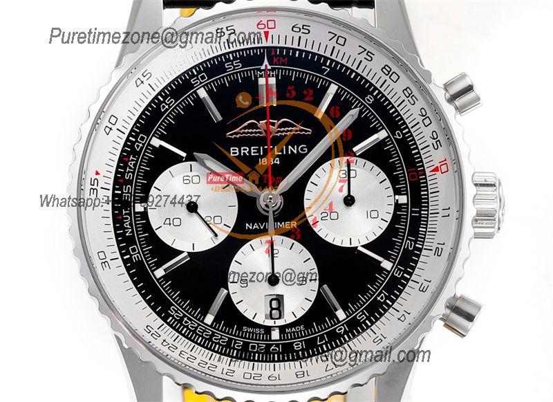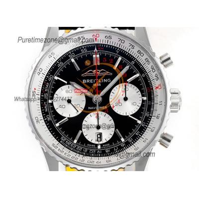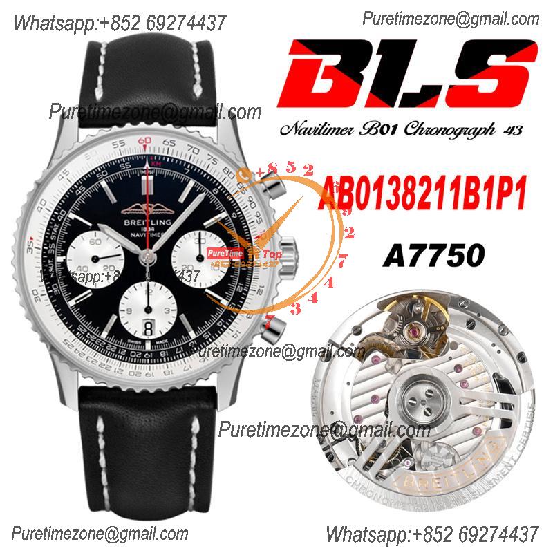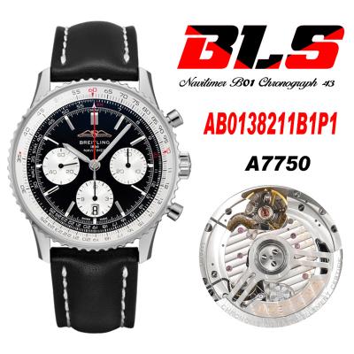 Navitimer B01 AB0138211 A7750 Automatic Chronograph Mens Watch Best Edition BLSF Black Dial Leather Strap