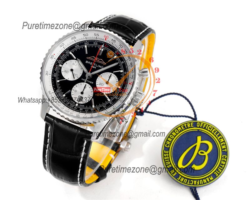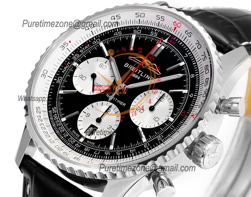 Navitimer B01 AB0138211 A7750 Automatic Chronograph Mens Watch Best Edition BLSF Silver Dial Black Leather Strap