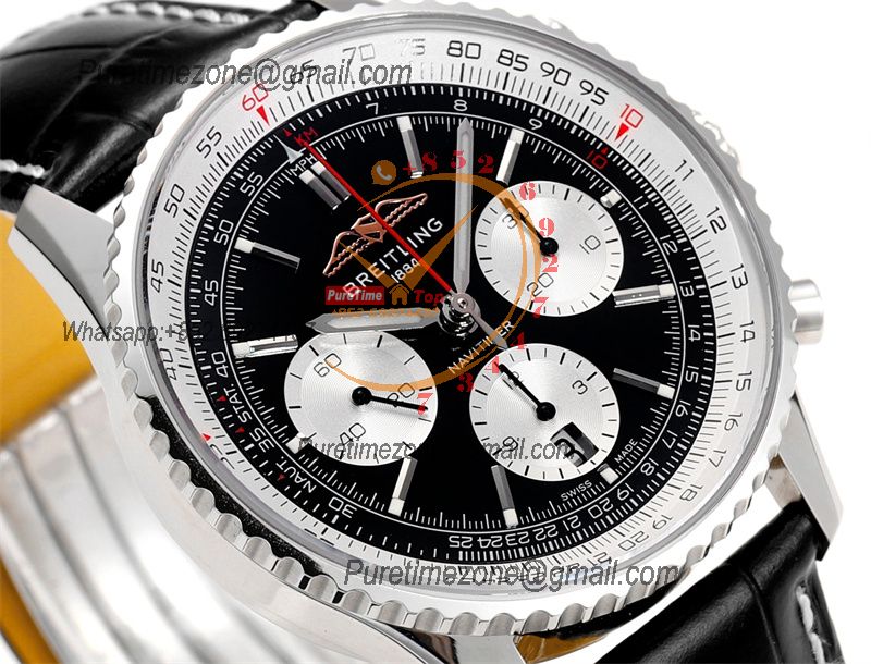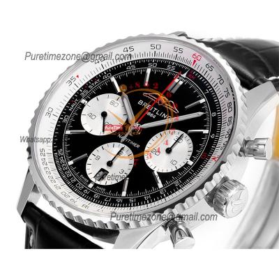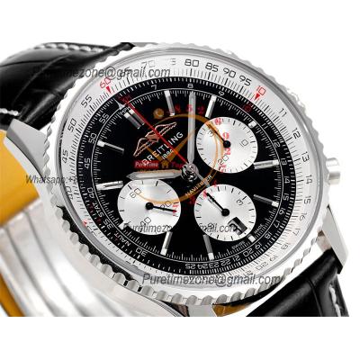 A24322121 Navitimer 1 World GMT A7750 Automatic Chronograph Mens Watch Black Dial Leather Strap Best Edition