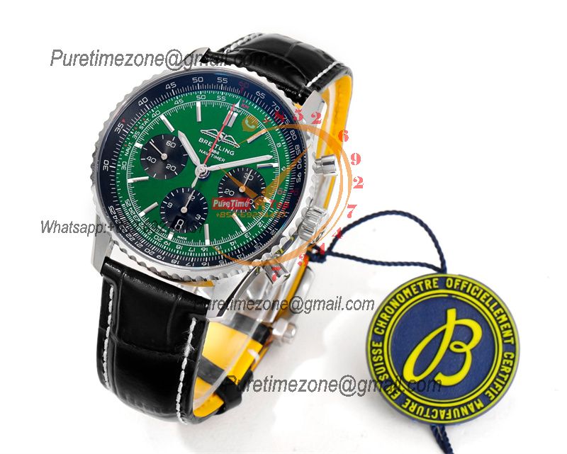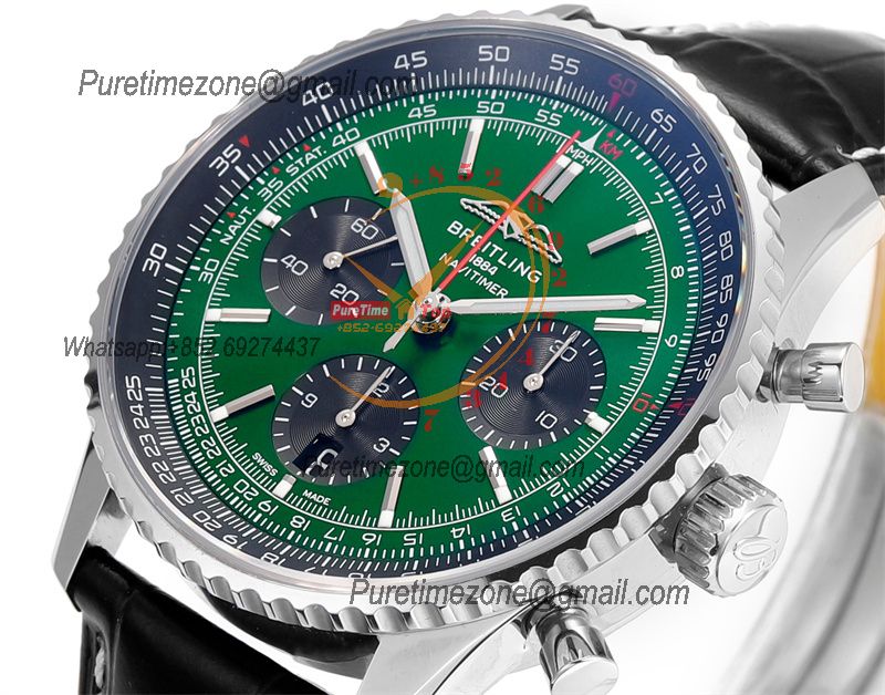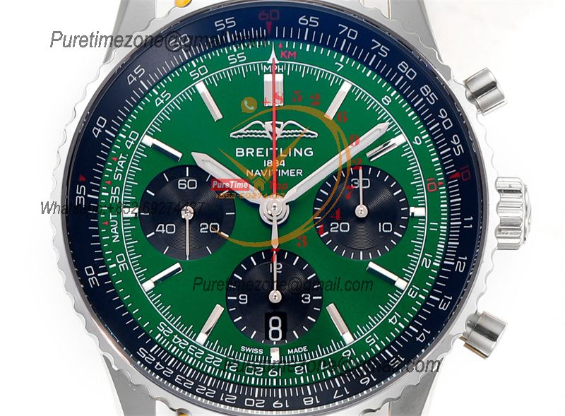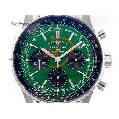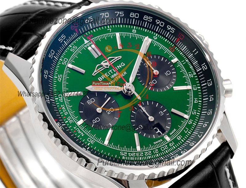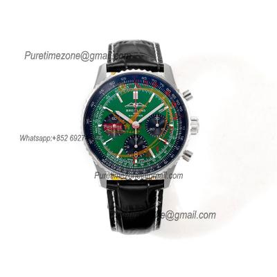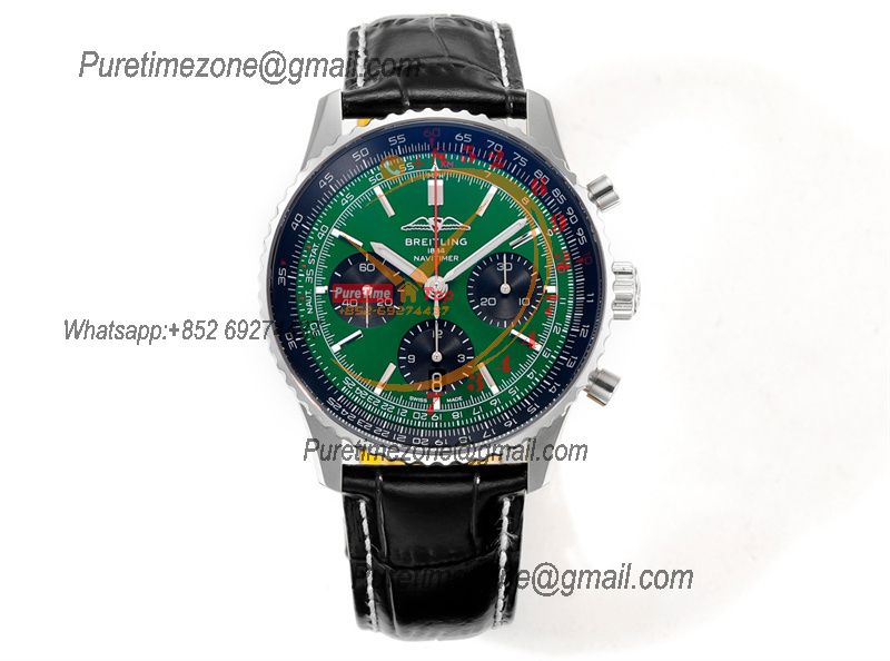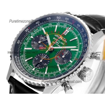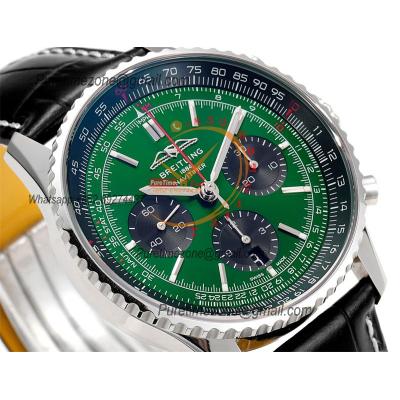 Navitimer B01 AB0138241 A7750 Automatic Chronograph Mens Watch Best Edition BLSF Green Dial Black Leather Strap