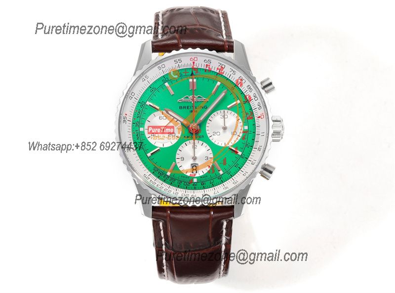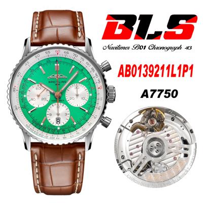 Navitimer B01 AB0139211 A7750 Automatic Chronograph Mens Watch Best Edition BLSF Green Dial Brown Leather Strap