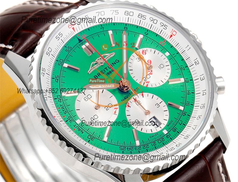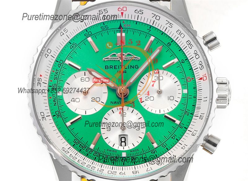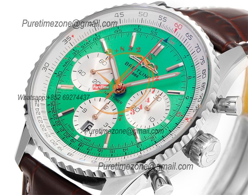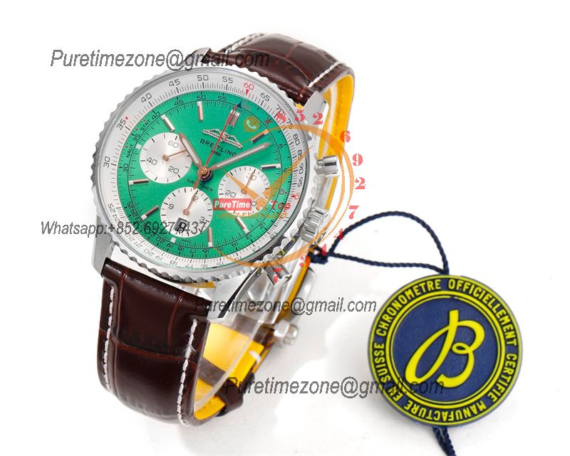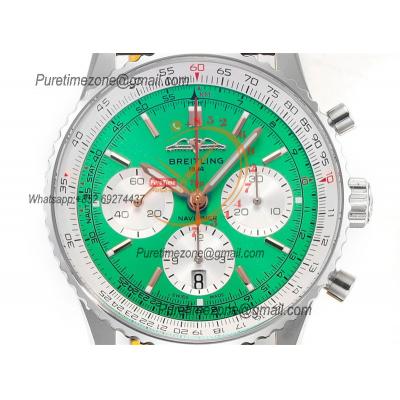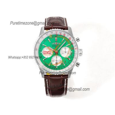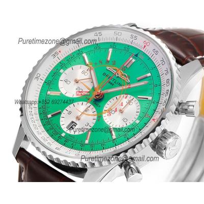 Navitimer B01 AB0138241 A7750 Automatic Chronograph Mens Watch Best Edition BLSF Green Dial Black Leather Strap