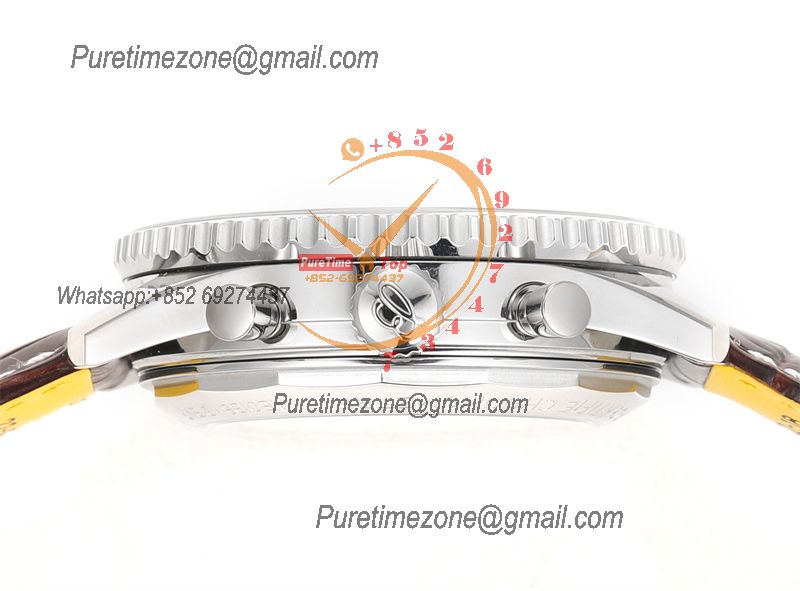 Navitimer 1 AB012012 A7750 Automatic Chronograph Mens Watch SS Best Edition BLSF Silver Dial Brown Leather Strap