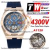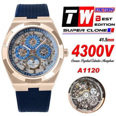 Overseas Perpetual Calendar Moonphase 4300V A1120 Automatic Mens Watch Best Edition TWF RG Skeleton Dial Blue Rubber