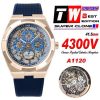 Overseas Perpetual Calendar Moonphase 4300V A1120 Automatic Mens Watch Best Edition TWF RG Skeleton Dial White Rubber