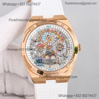 Overseas Perpetual Calendar Moonphase 4300V A1120 Automatic Mens Watch Best Edition TWF RG Skeleton Dial White Rubber