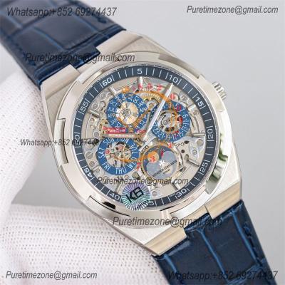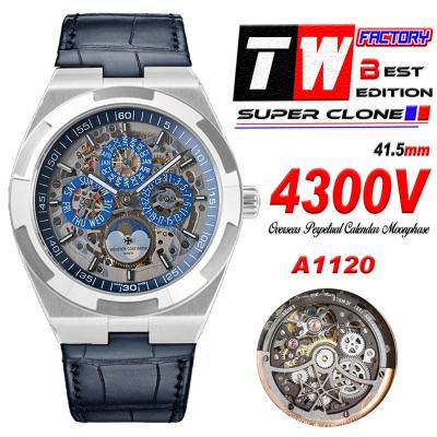 Overseas Perpetual Calendar Moonphase 4300V A1120 Automatic Mens Watch Best Edition TWF SS Skeleton Dial Blue Leather