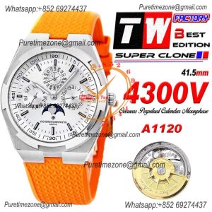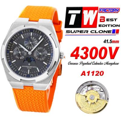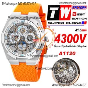 Overseas Perpetual Calendar Moonphase 4300V A1120 Automatic Mens Watch Best Edition TWF SS Skeleton Dial Orange Rubber