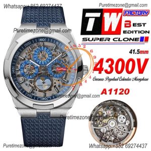 Overseas Perpetual Calendar Moonphase 4300V A1120 Automatic Mens Watch Best Edition TWF SS Skeleton Dial Blue Rubber