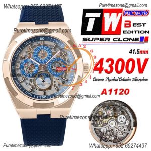 Overseas Perpetual Calendar Moonphase 4300V A1120 Automatic Mens Watch Best Edition TWF RG Skeleton Dial Blue Rubber
