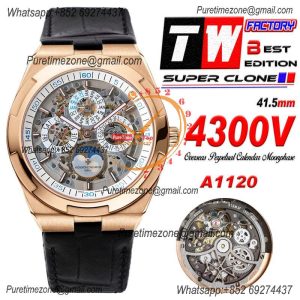 Overseas Perpetual Calendar Moonphase 4300V A1120 Automatic Mens Watch Best Edition TWF RG Skeleton Dial Black Leather
