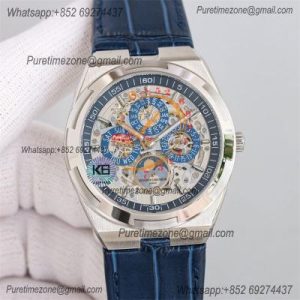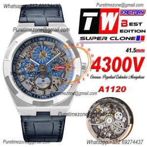 Overseas Perpetual Calendar Moonphase 4300V A1120 Automatic Mens Watch Best Edition TWF SS Skeleton Dial Blue Leather