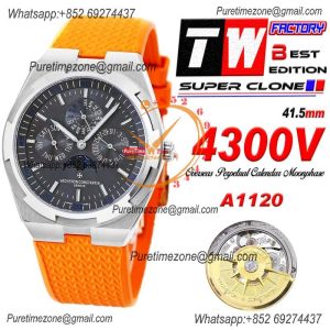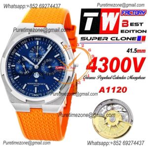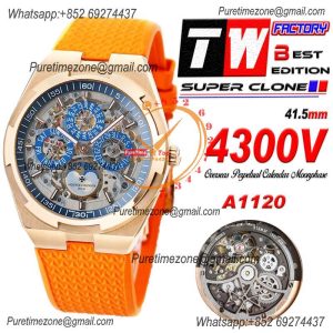 Overseas Perpetual Calendar Moonphase 4300V A1120 Automatic Mens Watch Best Edition TWF RG Skeleton Dial Orange Rubber