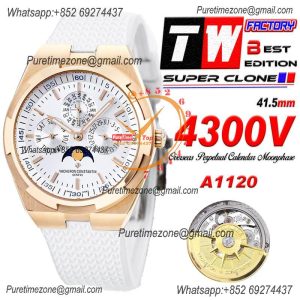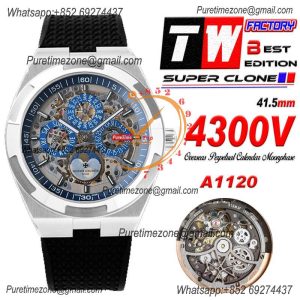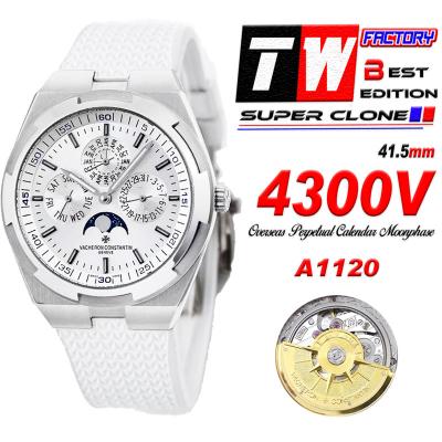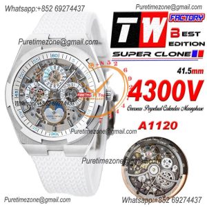 Overseas Perpetual Calendar Moonphase 4300V A1120 Automatic Mens Watch Best Edition TWF SS Skeleton Dial White Rubber