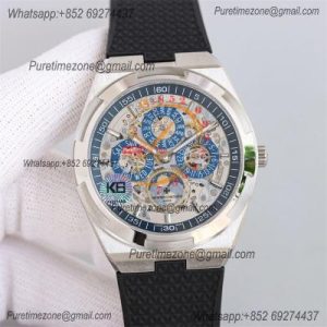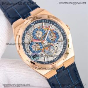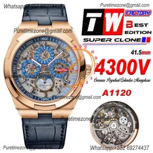 Overseas Perpetual Calendar Moonphase 4300V A1120 Automatic Mens Watch Best Edition TWF RG Skeleton Dial Blue Leather