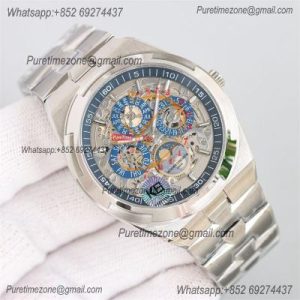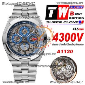 Overseas Perpetual Calendar Moonphase 4300V A1120 Automatic Mens Watch Best Edition TWF Blue Skeleton Dial SS Bracelet