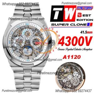 Overseas Perpetual Calendar Moonphase 4300V A1120 Automatic Mens Watch Best Edition TWF White Skeleton Dial SS Bracelet