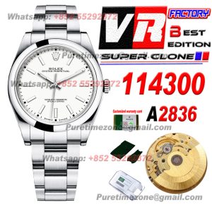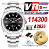 Oyster Perpetual 114300 Automatic Mens Watch Super Clone VRF 39 Black Dial 904L SS Bracelet A2836 CHS