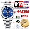 Oyster Perpetual 114300 Automatic Mens Watch Super Clone VRF 39 Blue Dial 904L SS Bracelet A2836 CHS