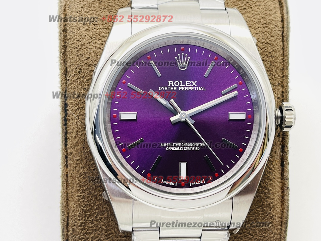 Oyster Perpetual 114300 Automatic Mens Watch Super Clone VRF 39 Red Grape Dial 904L SS Bracelet A2836 CHS
