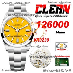 Oyster Perpetual 126000 36mm VR3230 Automatic Unisex Watch Best Edition CLEAN Yellow Dial 904L Oyster SS Bracelet
