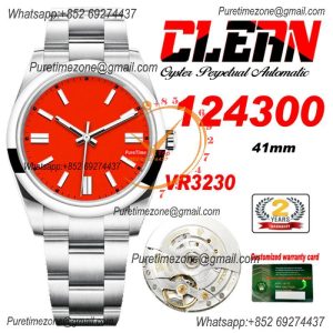 Oyster Perpetual 124300 41mm VR3230 Automatic Mens Watch Best Edition CLEAN Red Dial 904L Oyster SS Bracelet