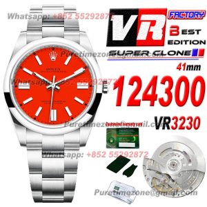 Oyster Perpetual 124300 Automatic Mens Watch Super Clone VRF 41 Red Dial 904L SS Bracelet VR3230 CHS $630.00 $520.00