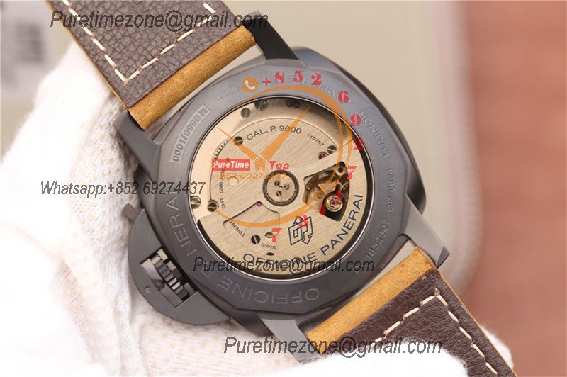 Movement:Custom designed Asian automatic movement to match the genuine Panerai P.9000 movement at 28800vph, same balance wheel position as genuine P.9000 movement.