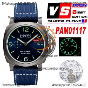 PAM01117 Luminor Marina Blu Profondo P9010 Automatic Mens Watch Titanium VSF Best Edition Blue Kevlar Composite Strap