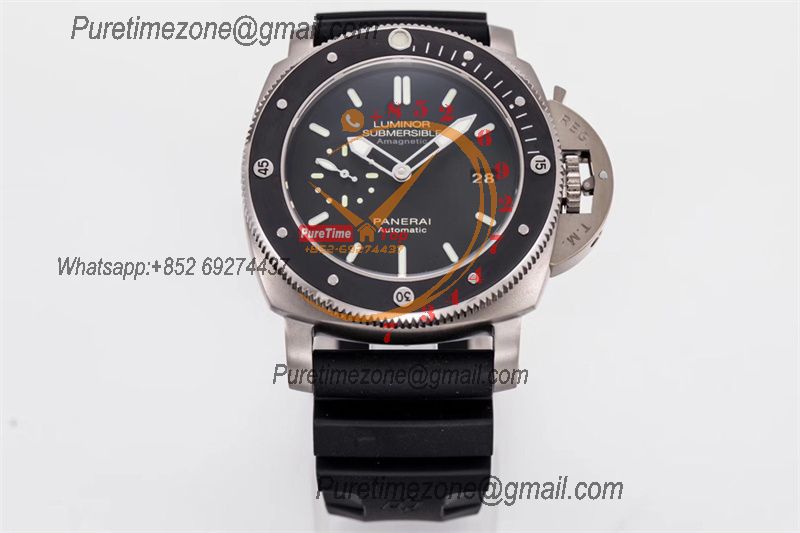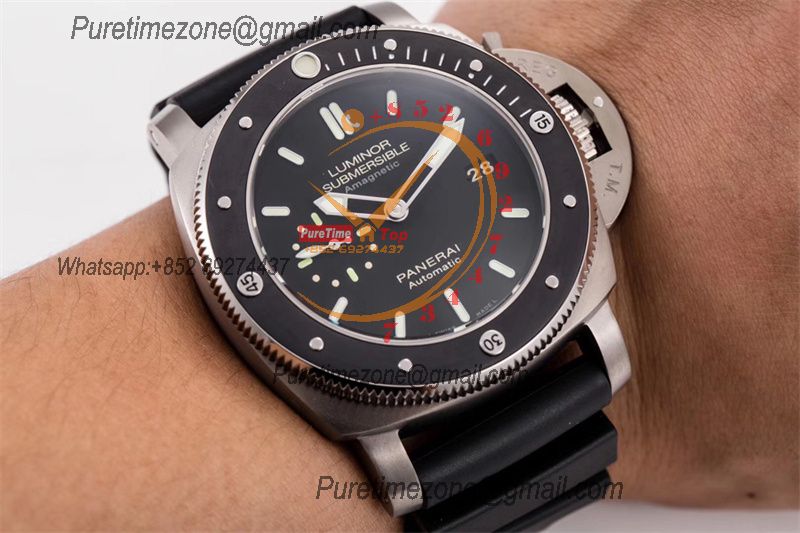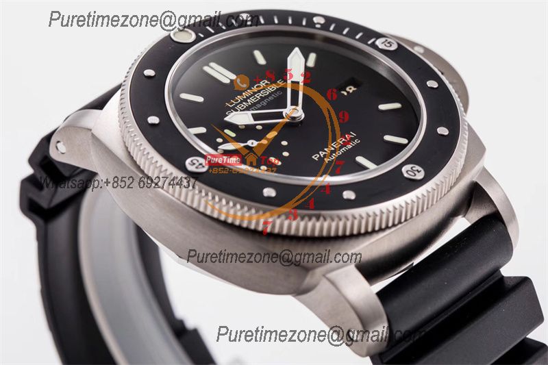 PAM00389 Luminor Submersible 1950 Titanium Amagnetic P9000 Automatic Mens Watch VSF Best Edition Black Rubber Strap