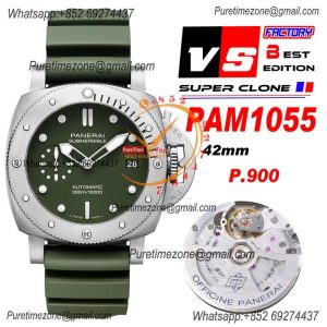 PAM01055 Luminor Submersible Verde Militare P900 Automatic Mens Watch VSF 42mm 1:1 Best Edition on Green Rubber Strap