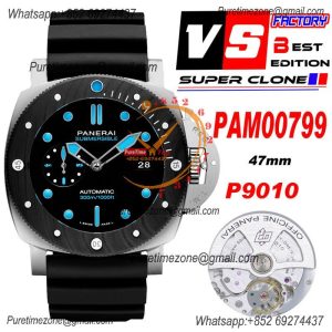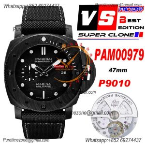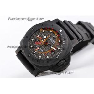 PAM00979 Luminor Submersible Carbotech P9010 Automatic Mens Watch VSF Best Edition Carbon Dial Rubber Strap
