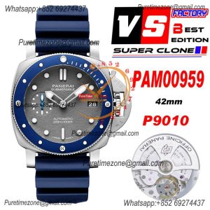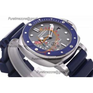 PAM00959 Submersible P9010 Automatic Mens Watch 42mm VSF Best Edition Blue Ceramic Bezel Gray Dial Blue Rubber Strap