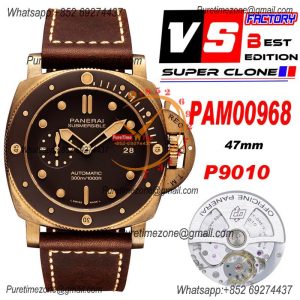 PAM00968 Submersible Bronzo P9010 Automatic Mens Watch VSF Best Edition Brown Ceramic Bezel and Dial Calfskin Strap