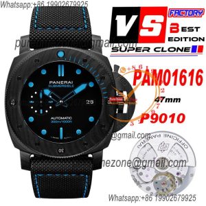 PAM01616 Submersible Carbotech P9010 Automatic Mens Watch 47 VSF Best Edition Black Dial Blue Markers Rubber Strap