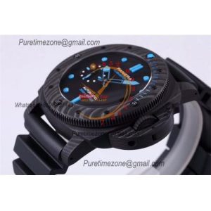 PAM00960 Submersible Carbotech P9010 Automatic Mens Watch 42mm VSF Best Edition Black Dial Blue Markers Rubber Strap