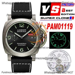 PAM01119 Luminor Marina Fibratech P9010 Automatic Mens Watch VSF 44mm VSF Best Edition on Black Sportech Strap