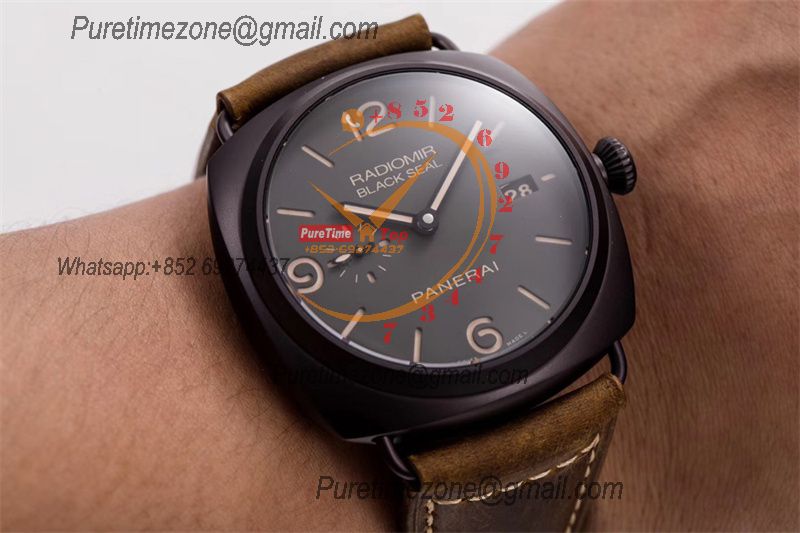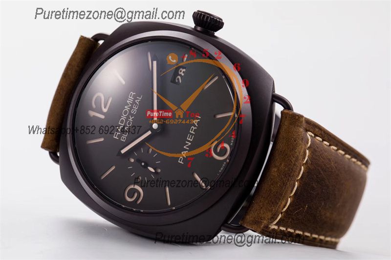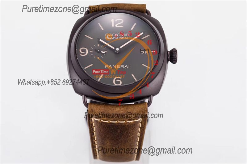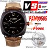 PAM00505 Radiomir Black Seal 3 Days P9000 Automatic Mens Watch VSF V2 1:1 Best Edition Brown Asso Strap