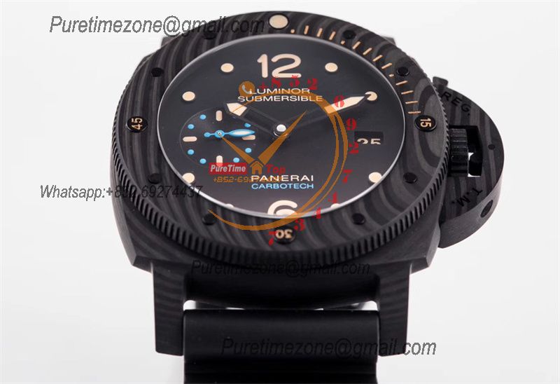 Case:Updated real carbotech Case, Crown Guard, Bezel. Same carbotech as genuine, unique pattern on each case, same material as Panerai Carbotech.