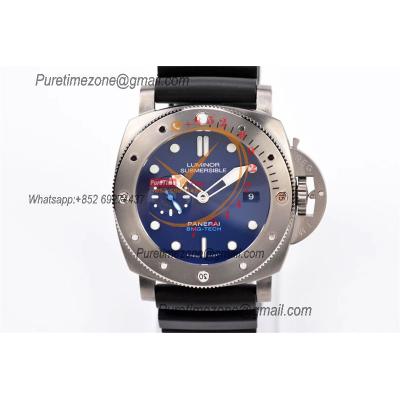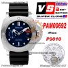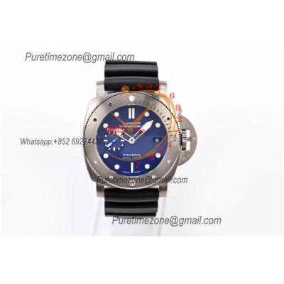 PAM00959 Submersible P9010 Automatic Mens Watch 42mm VSF Best Edition Blue Ceramic Bezel Gray Dial Blue Rubber Strap