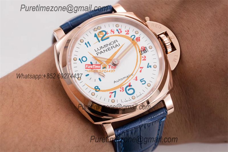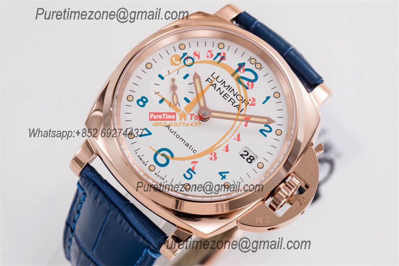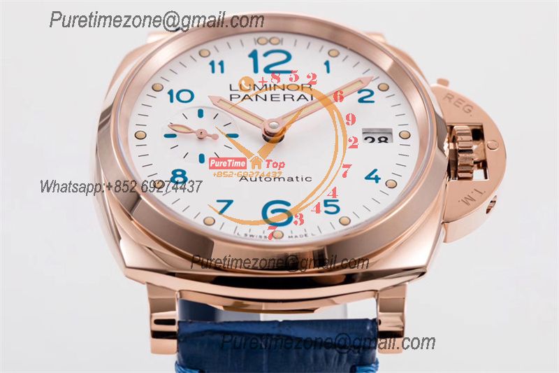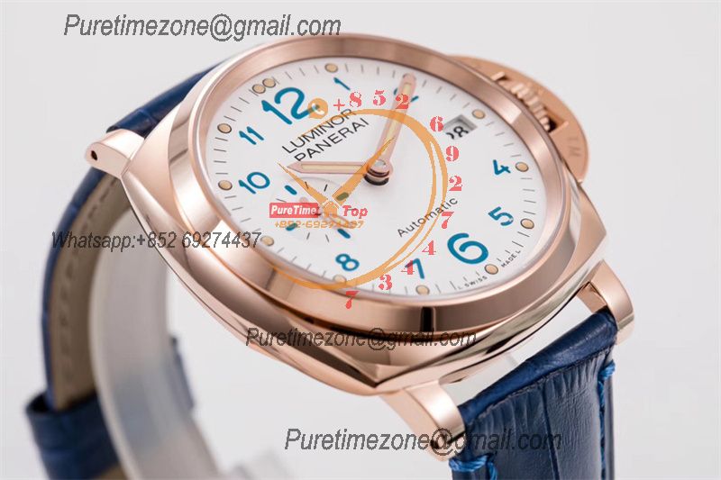 PAM00906 Luminor Due OP AXXXIV Automatic Mens Watch VSF 42mm Best Edition White Dial on Blue Leather Strap
