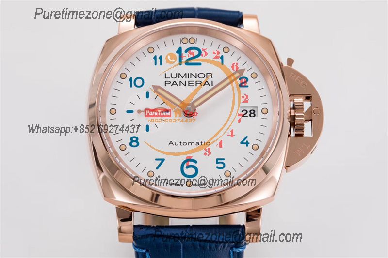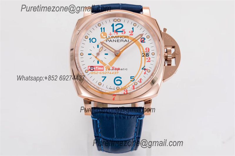 PAM00756 Luminor Due OP AXXXIV Automatic Mens Watch VSF 42mm Best Edition White Dial on Blue Leather Strap